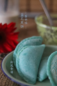 之前做了椰丝内馅, 第二天又动手做了这款的班兰蛋奶馅及采用了蓝花汁作为面糊的颜色, 两款都各有千秋。 而我个人也蛮喜欢这蓝花煎饼的颜色, 犹如一片蔚蓝的天空,蓝天白云既在眼前了, 那感觉真的很舒服。